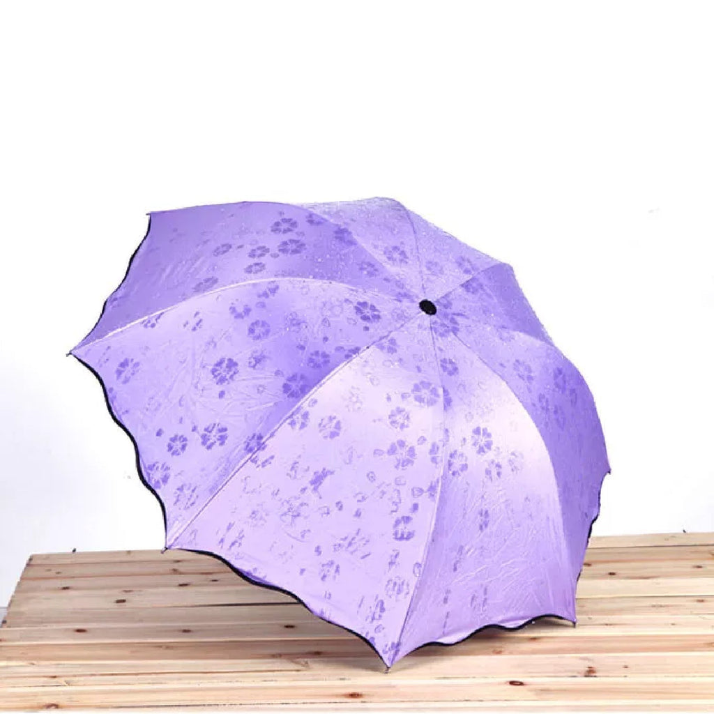 • Compact Travel Umbrella | Easy To Carry | Light Weight | Tiny Umbrella | Umbrella Which Fits In Most Handbags | Can Be Placed In The Matching Cover After Use. | This Umbrella shows Magic Flower Blossoms when Rain/Water touched.