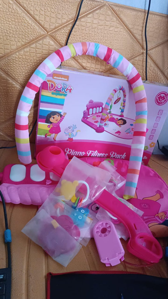 2in1 Baby Kick and Play Piano Gym Mat & Fitness Rack for Newborn Babies with Rattles, Musical Keyboard & Lights | Activity Play Gym Mat with 5 Hanging Toys (1 Set)