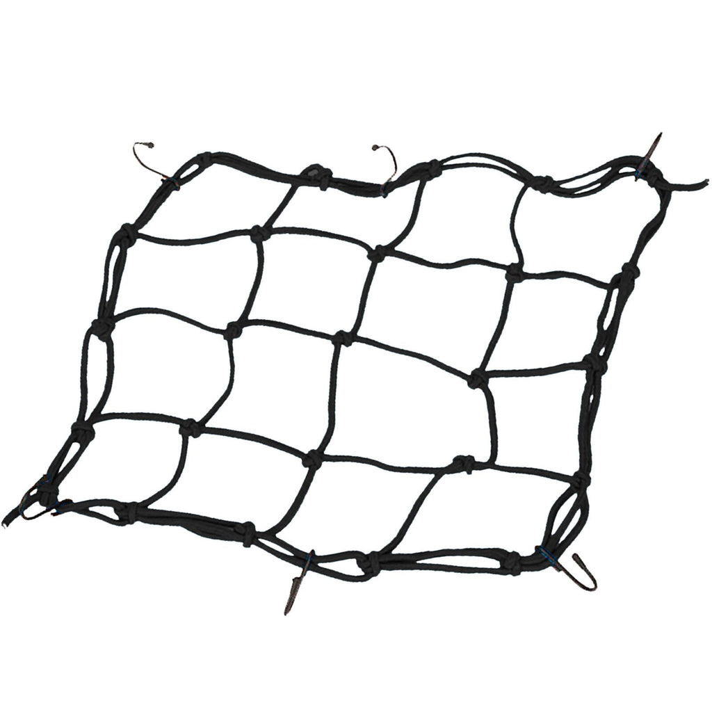 - Essential for storing spare helmets and jackets or equipment and luggage while you're on the road, the net is made from bungee cord, has 4 hooks to hold down luggage and other things.