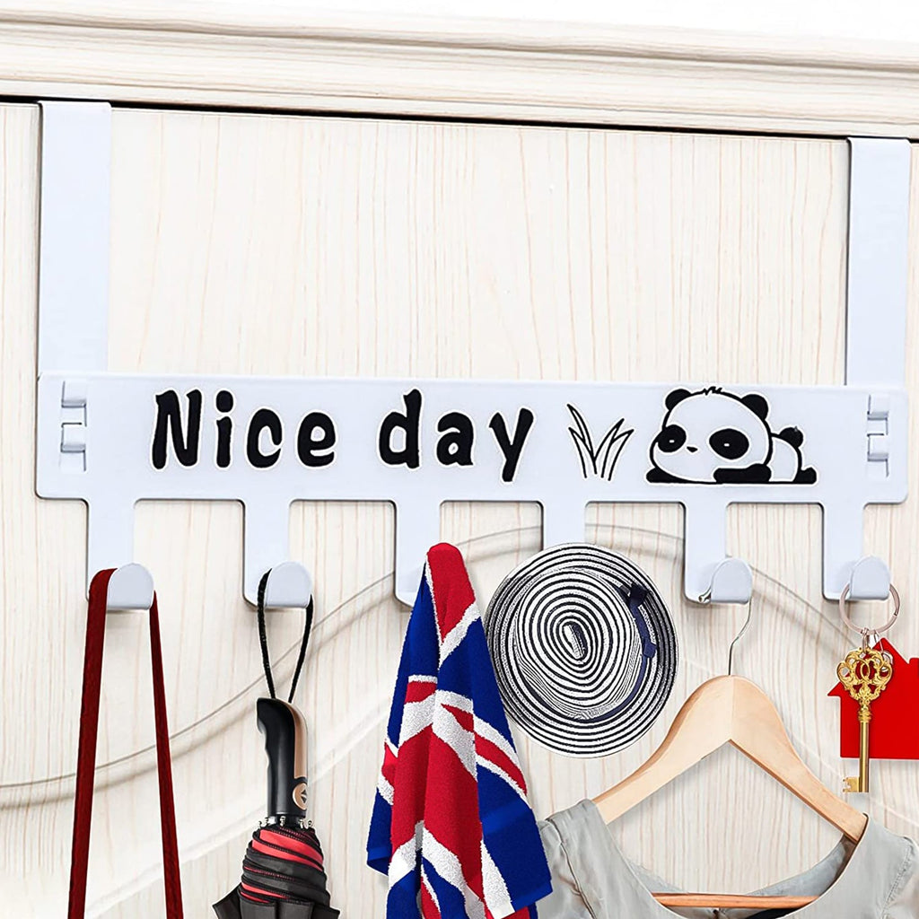 8536 Heavy-Duty Carbon Steel Cartoon Nice Day Over Door Hook Hanger Rack, Towel Hanger, Removable Door Hook, Coat, Scarf, Cloths Hanger (1 pc / 6 Hook)